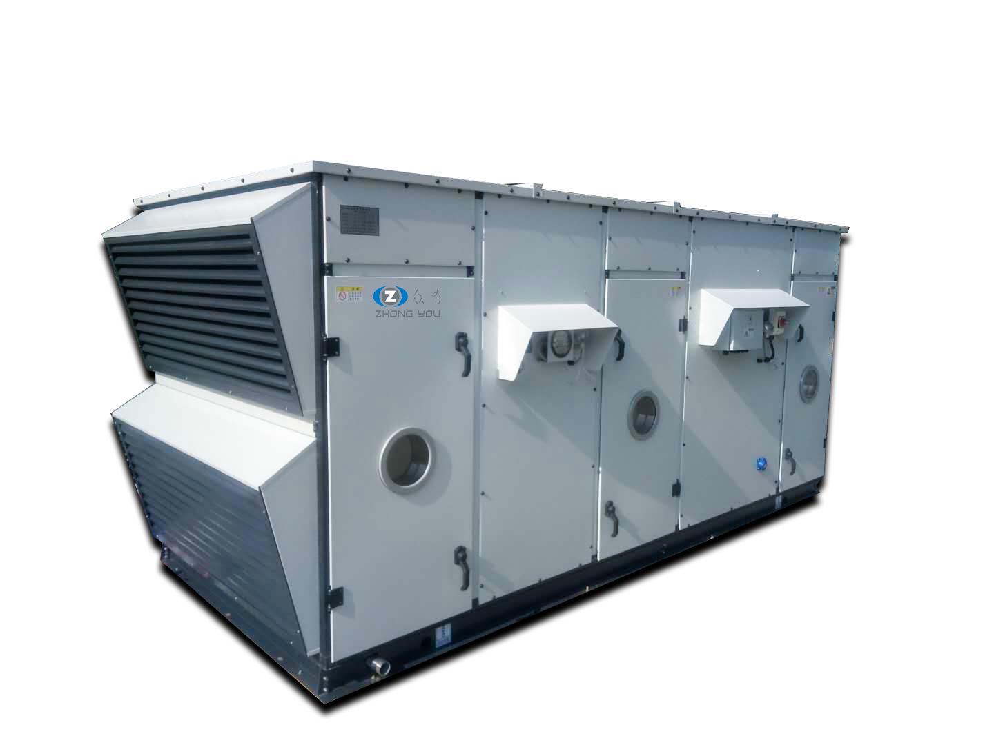 將室外的新鮮空氣經(jīng)處理后送入封閉區(qū)域、房間的機(jī)組,其蒸發(fā)器進(jìn)風(fēng)方式為全部新風(fēng)(或者新風(fēng)量占總送風(fēng)量50%以上的也可以參考本規(guī)范),特點是工況惡劣、工況變化大。此類機(jī)組包括制冷、制熱、加濕、除濕、通風(fēng)、潔凈等功能。其目的是為了配合回風(fēng)機(jī)組,對房間工況進(jìn)行調(diào)節(jié),一般精度要求不高。